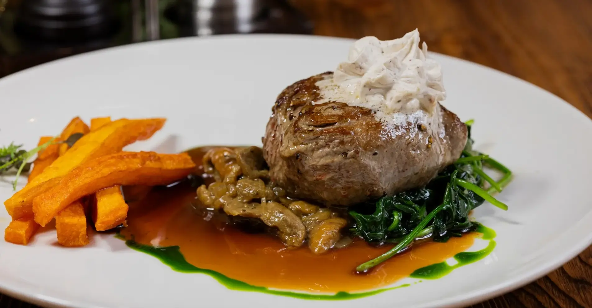 Forest Mushroom Ragout / Sautéed Spinach / Sweet Potato Fries / Marrow Butter with Truffle